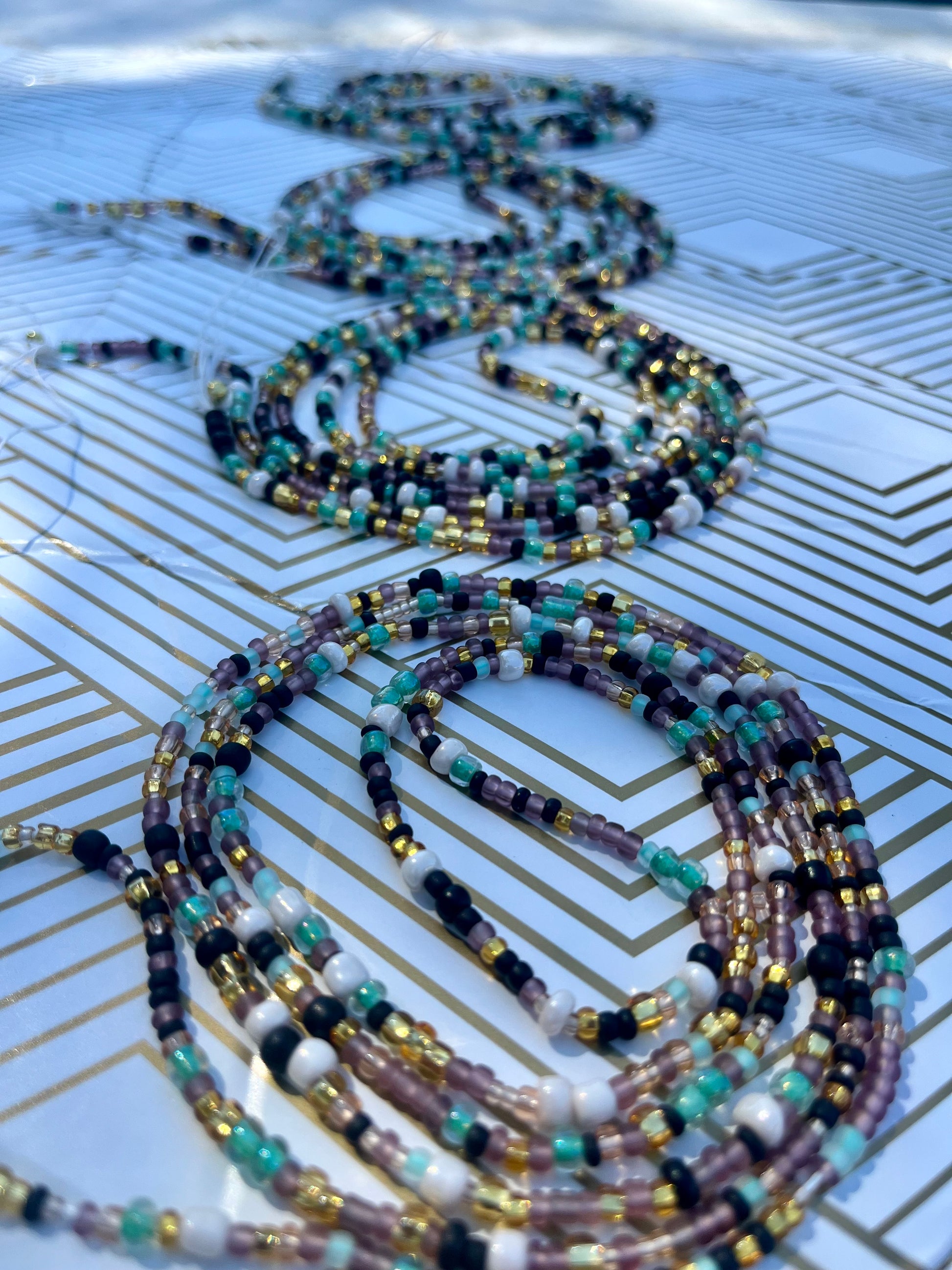 Colors: Mint Green and Multi-color Traditional Hand-crafted Waist beads.