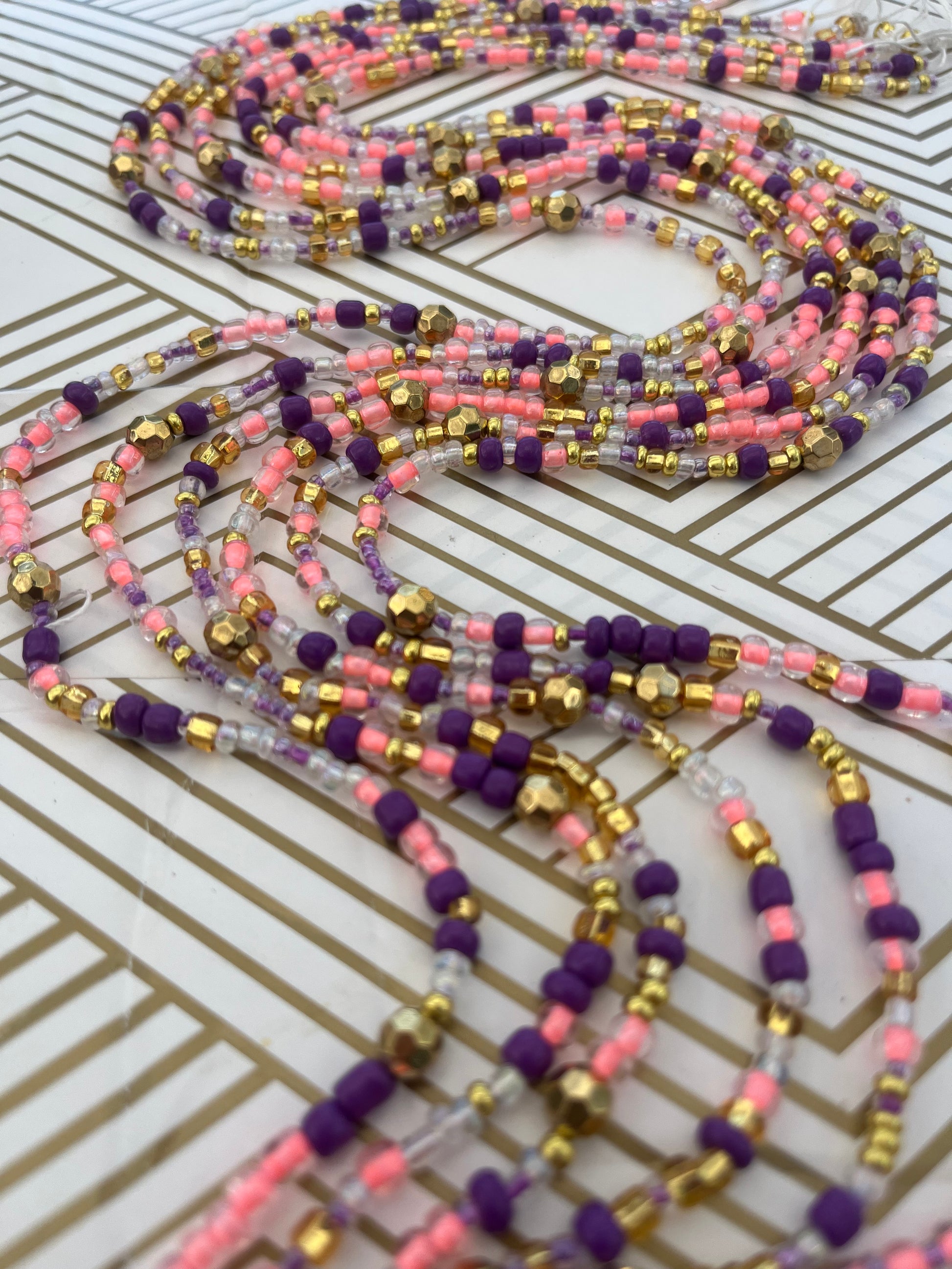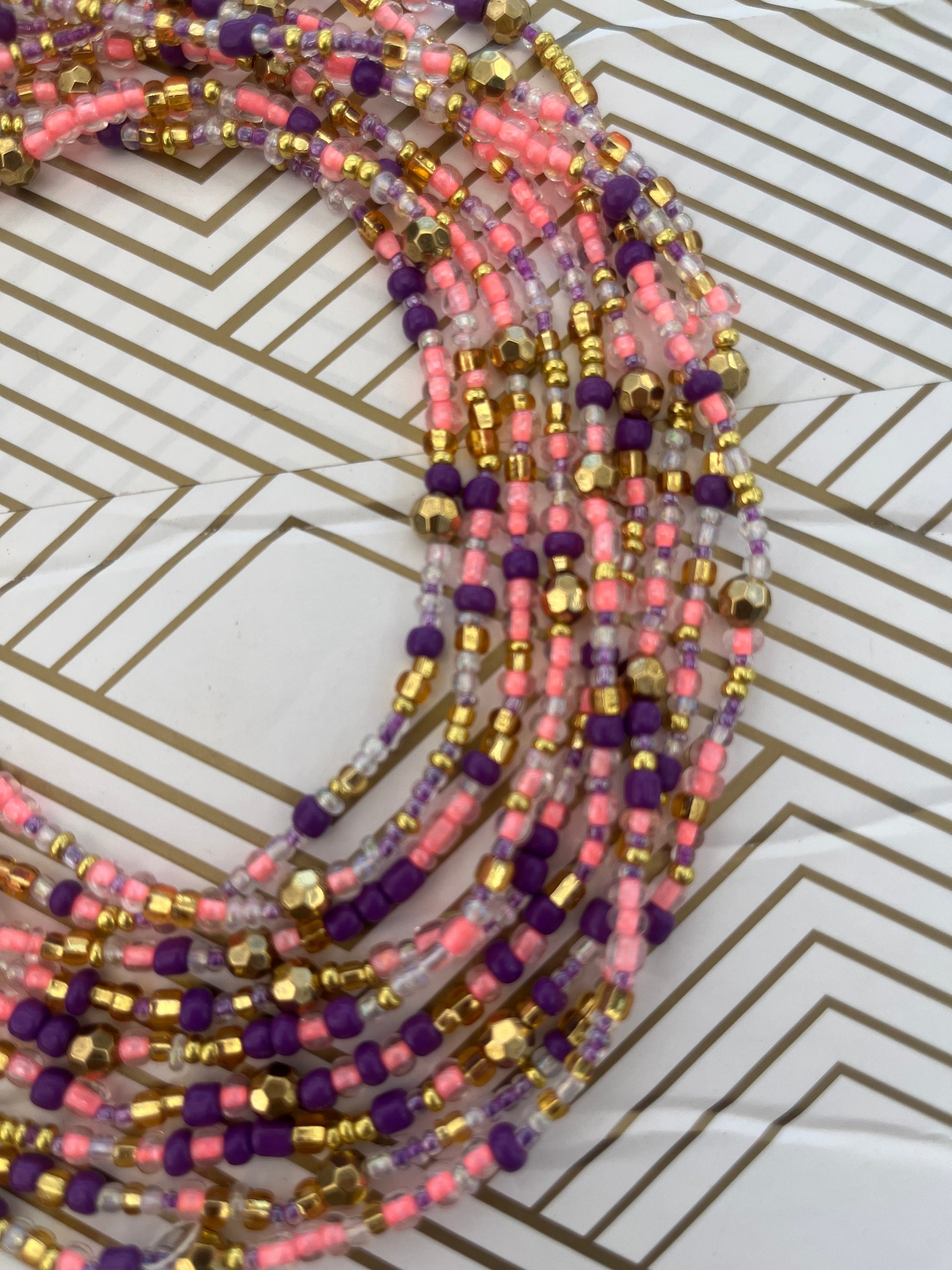 Colors: Pink and Purple Traditional Hand-crafted Waist beads.