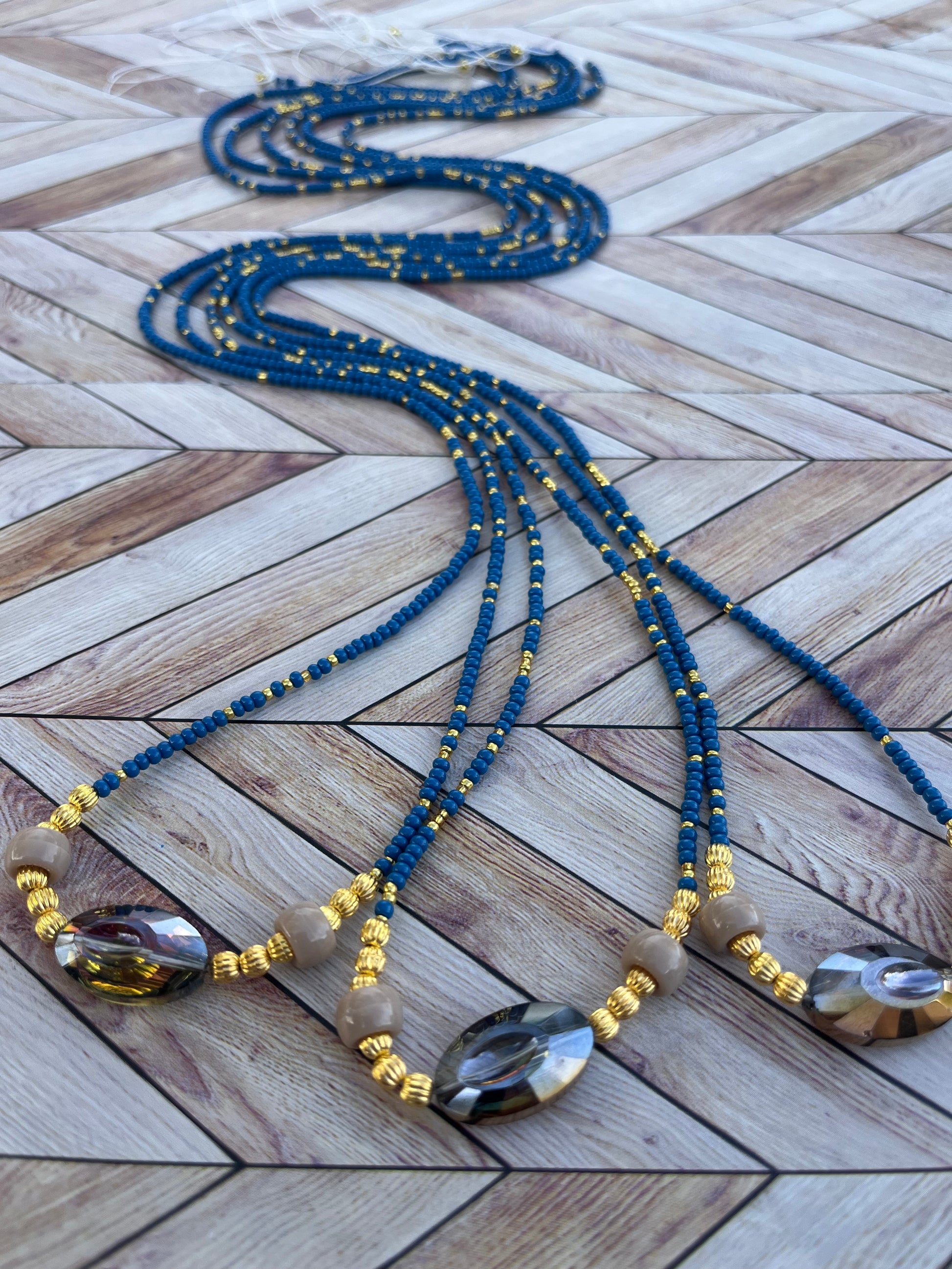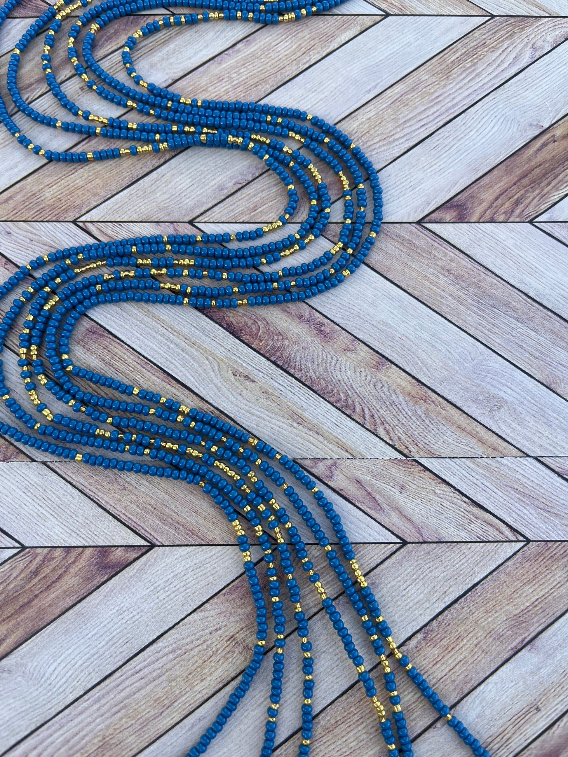 Colors: Navy Blue and Gold Traditional Hand-crafted Waist beads.