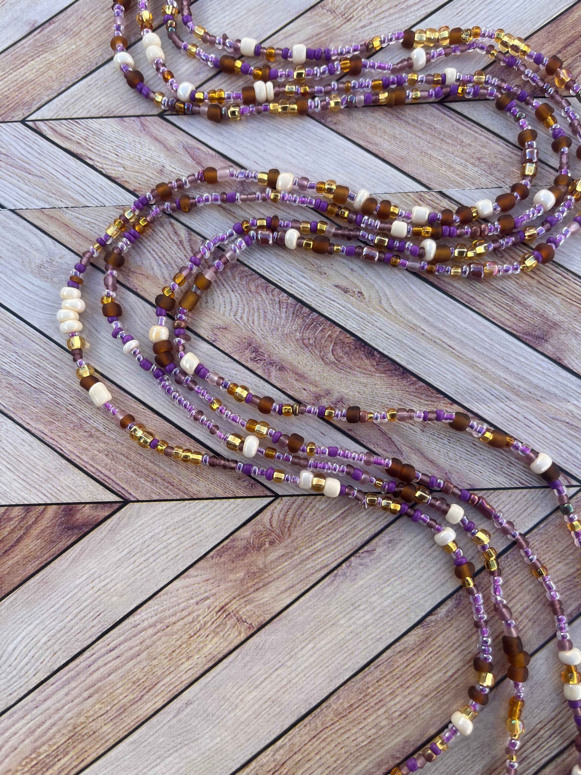 Colors: Purple and Gold Traditional Hand-crafted Waist beads.