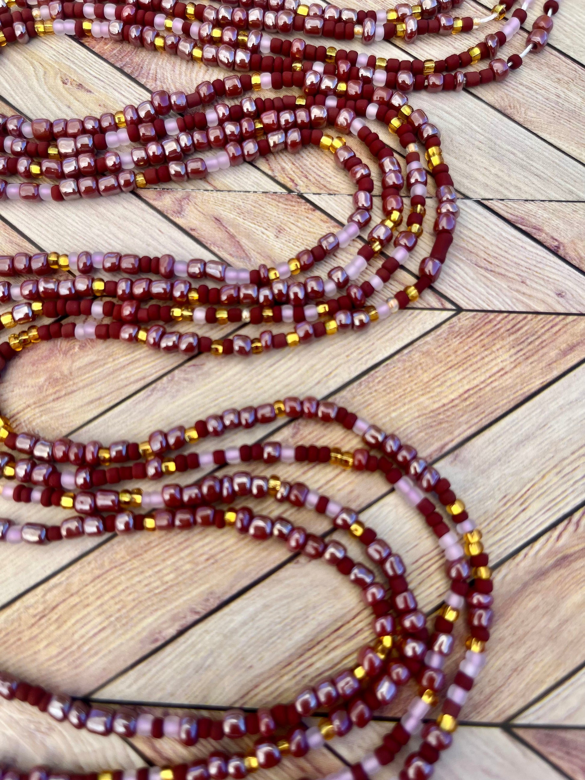 Colors: Burgandy and Gold Traditional Hand-crafted Waist beads.