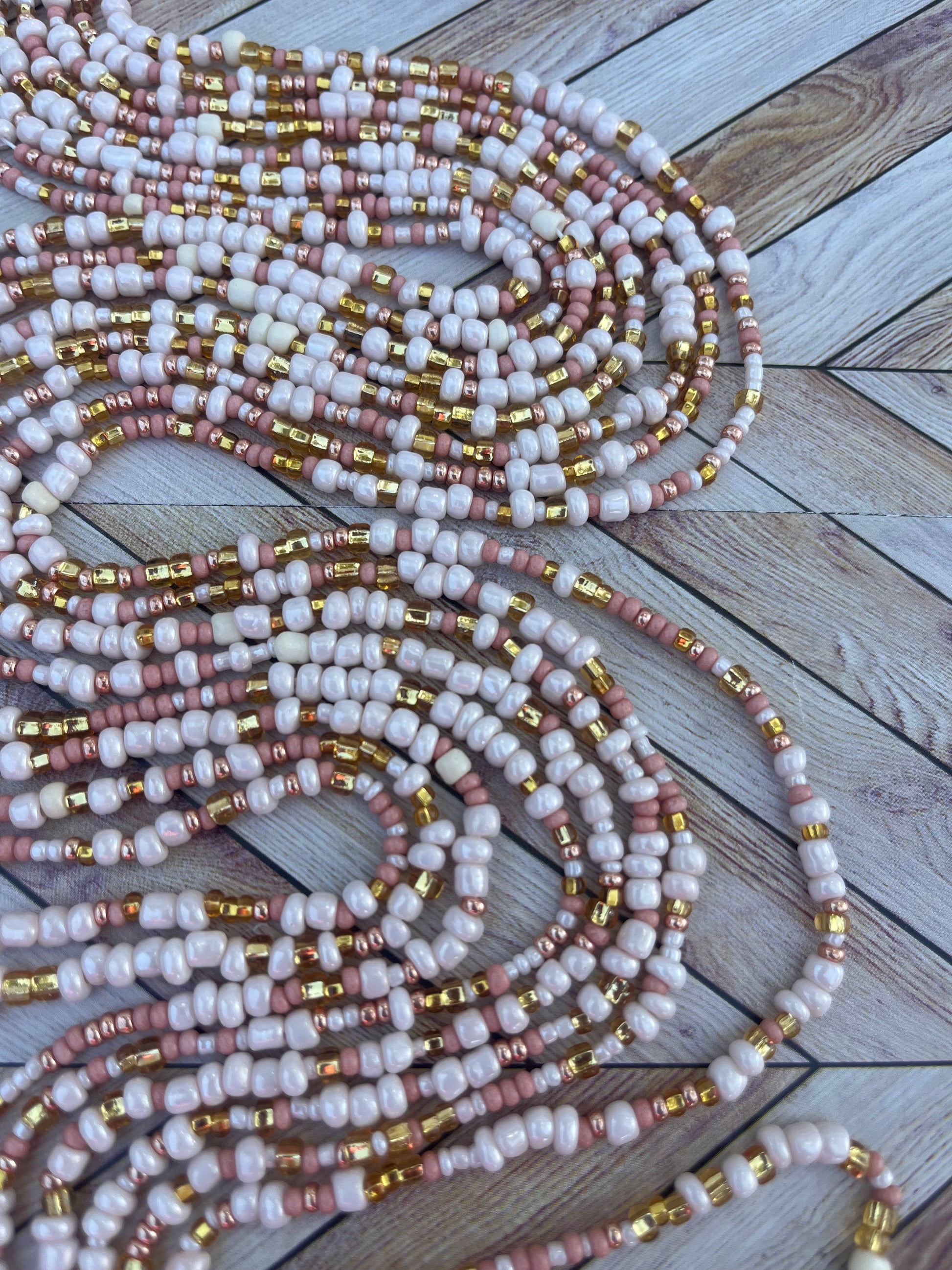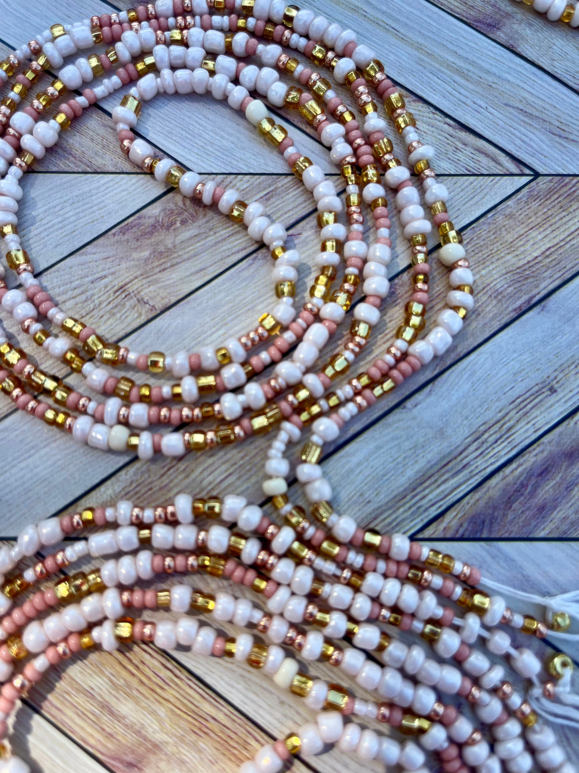 Colors: Rose Gold and Cream Traditional Hand-crafted Waist beads.