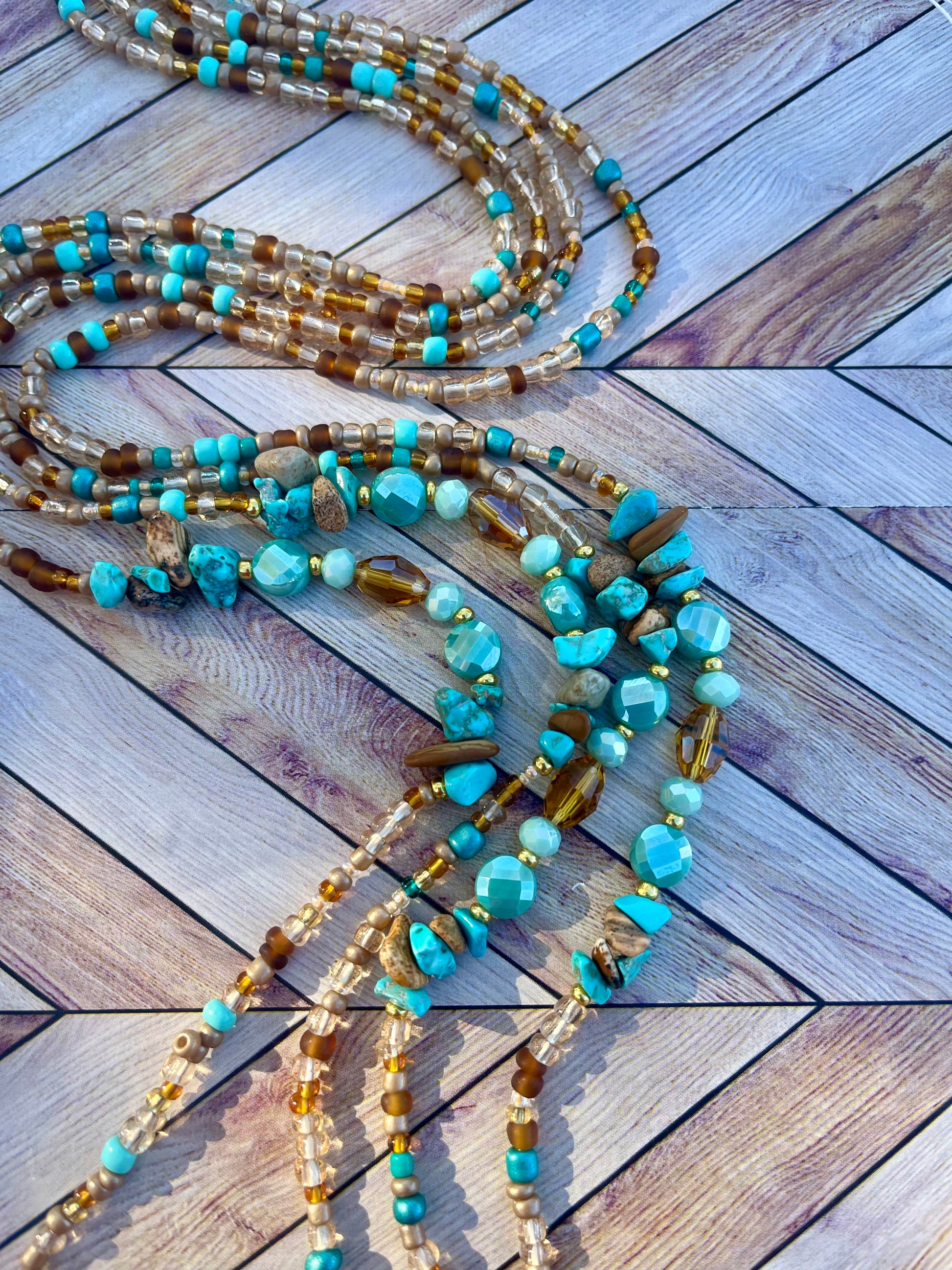 Colors: Brown and Turquoise Traditional Hand-crafted Waist beads.