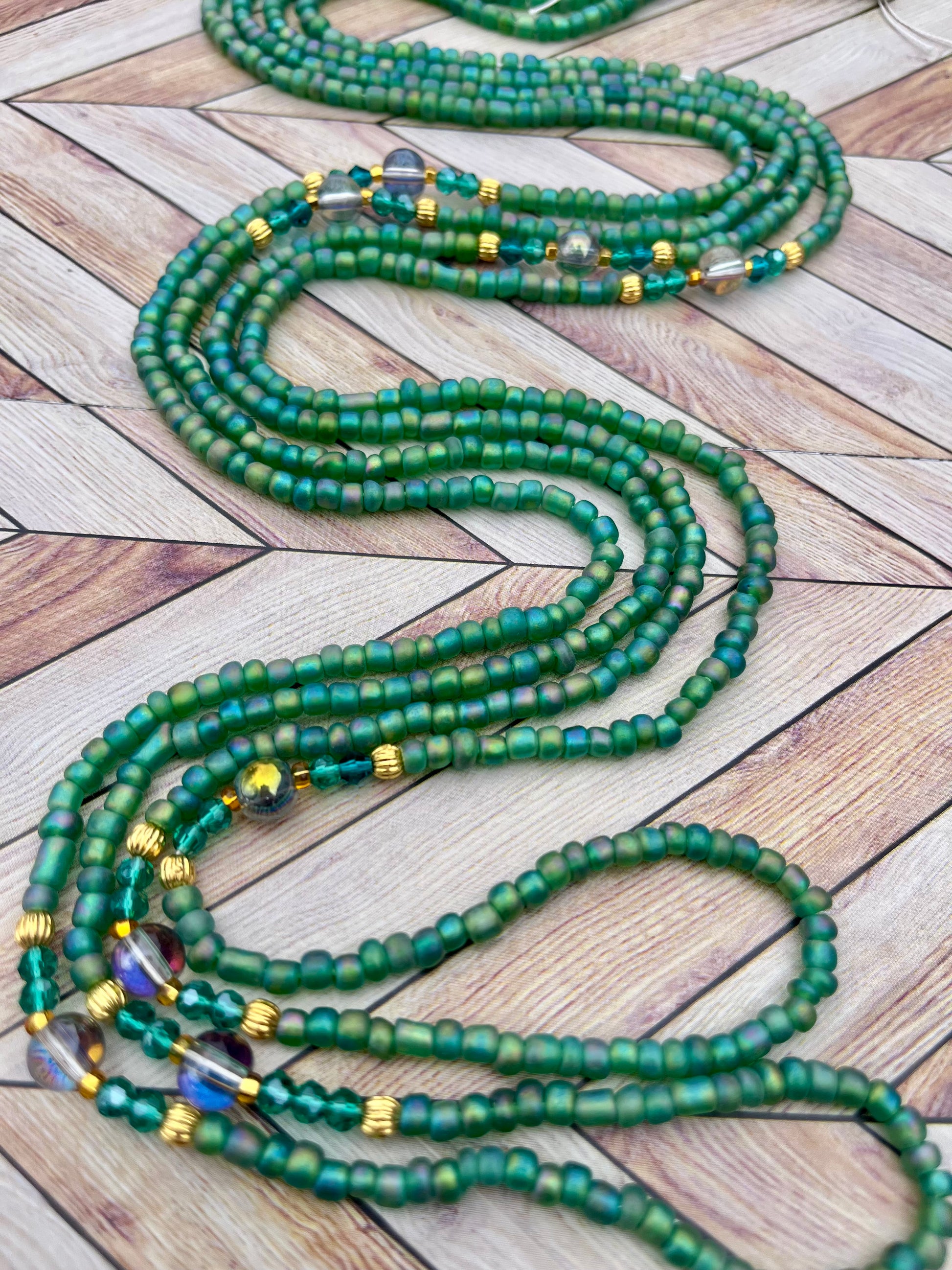 Colors: Green Traditional Hand-crafted Waist beads.