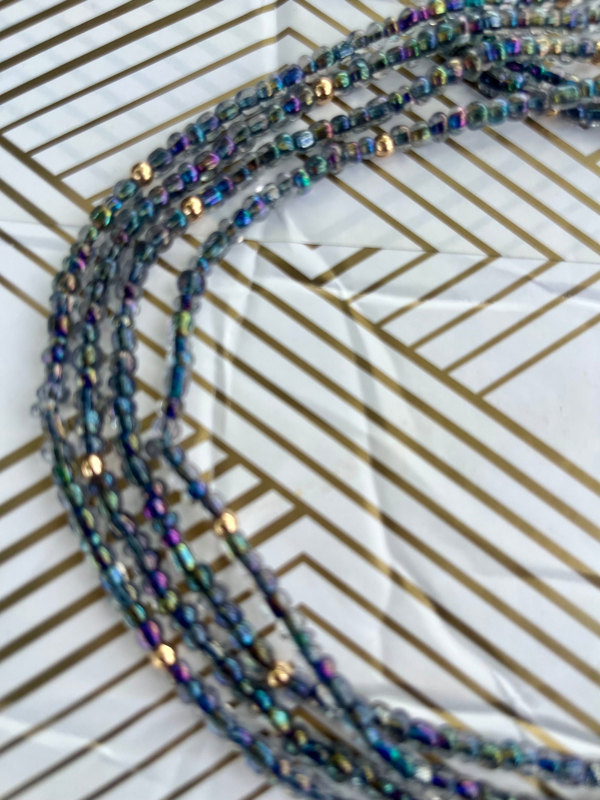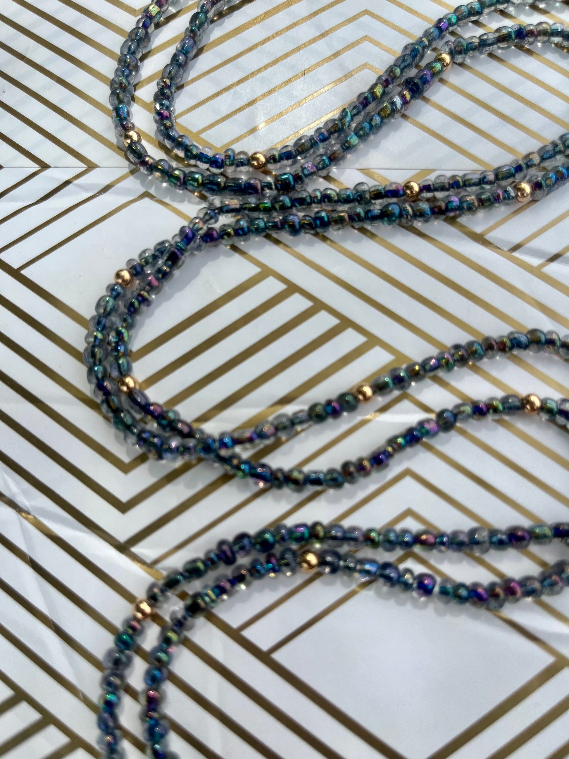 Colors: Gray Iridescent Traditional Hand-crafted Waist beads.