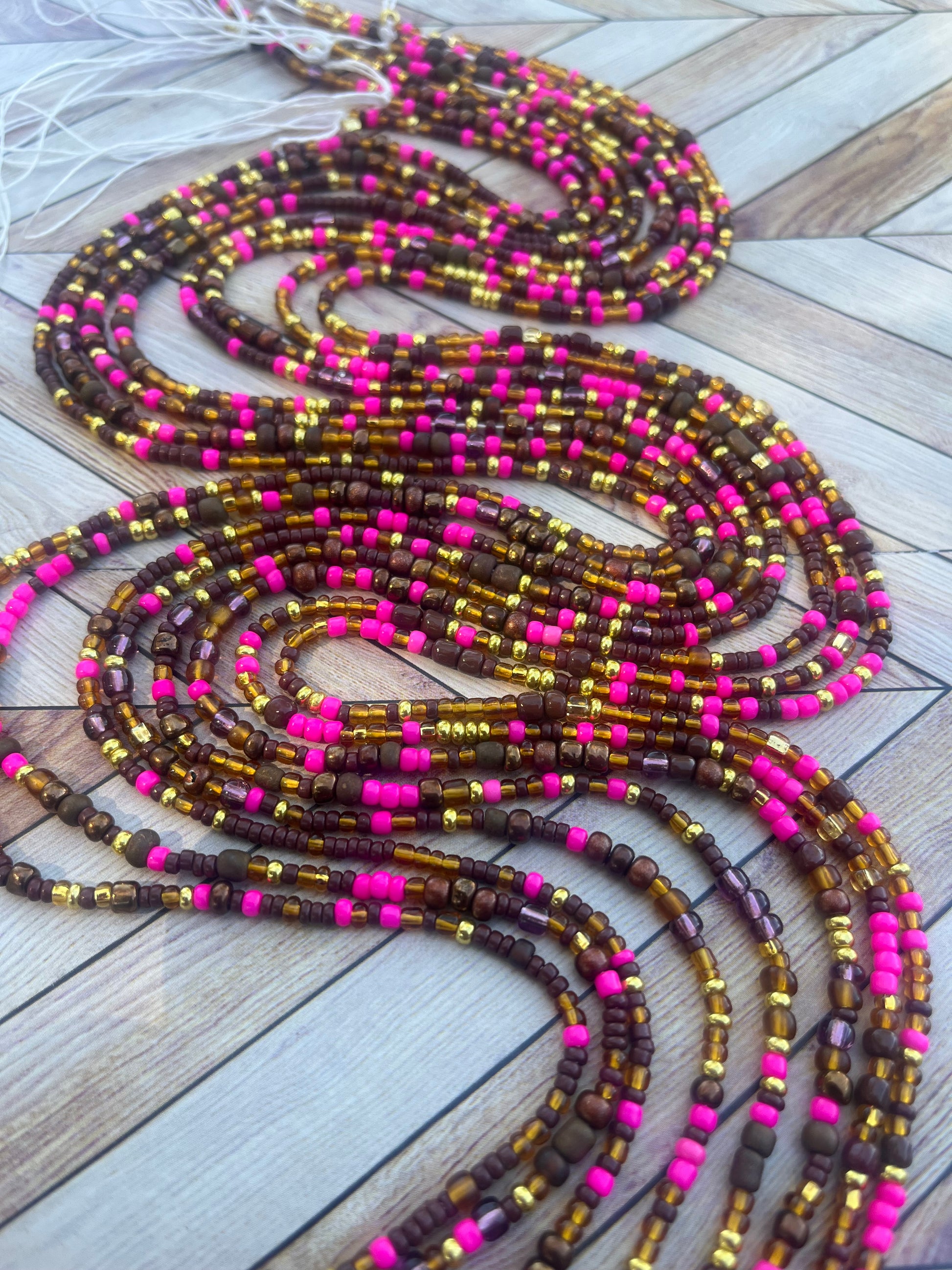 Colors: Brown and Pink Traditional Hand-crafted Waist beads.