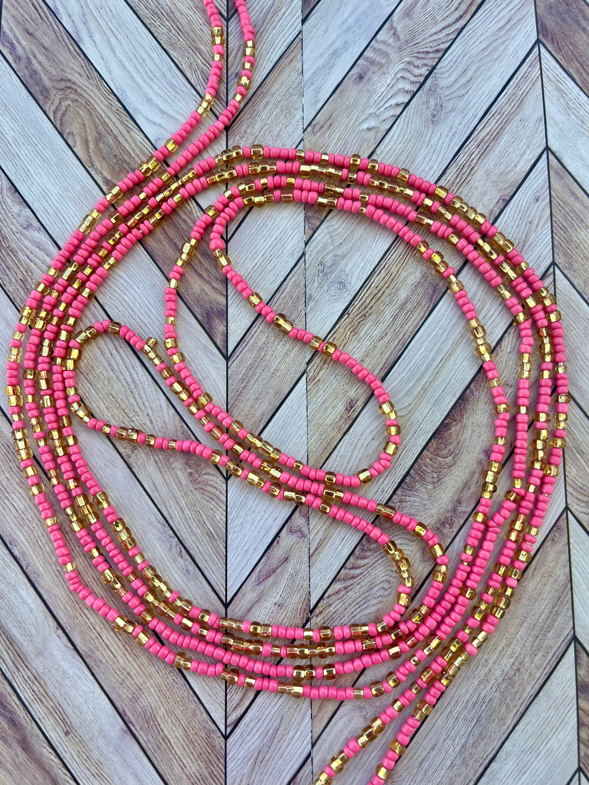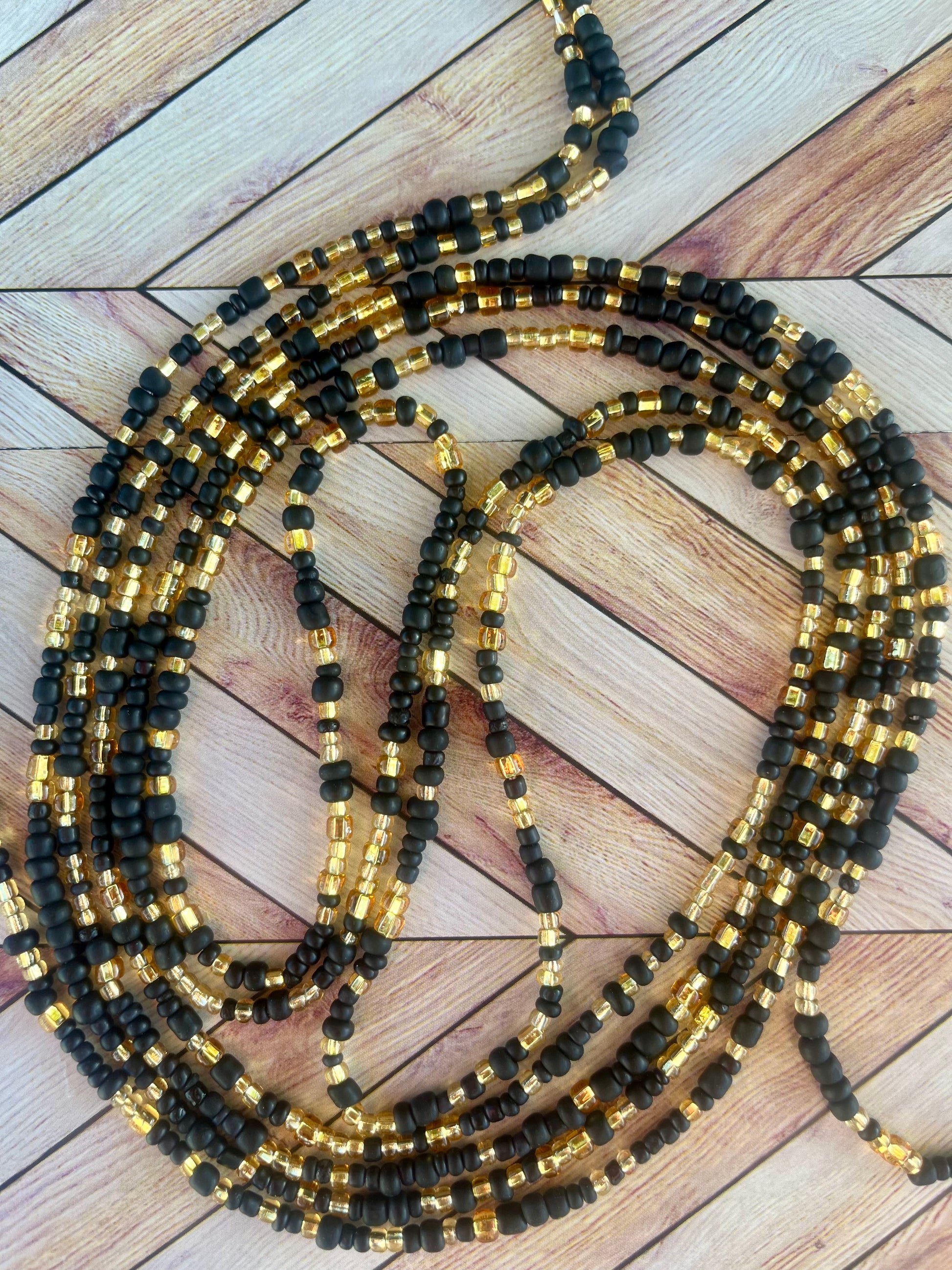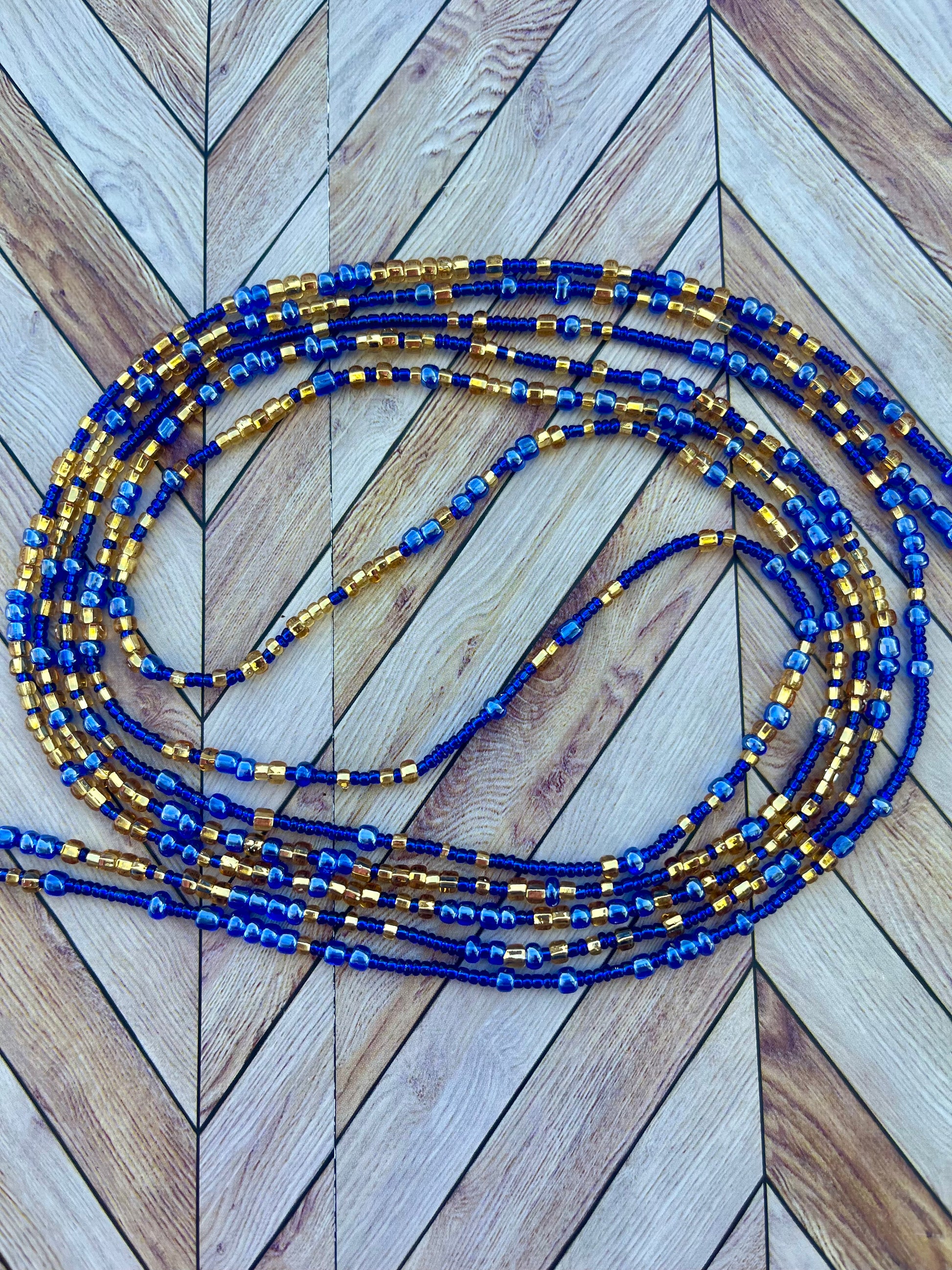 Colors: Black and Gold, White and Gold, Coral and Gold, and Royal Blue Traditional Hand-crafted Waist beads.