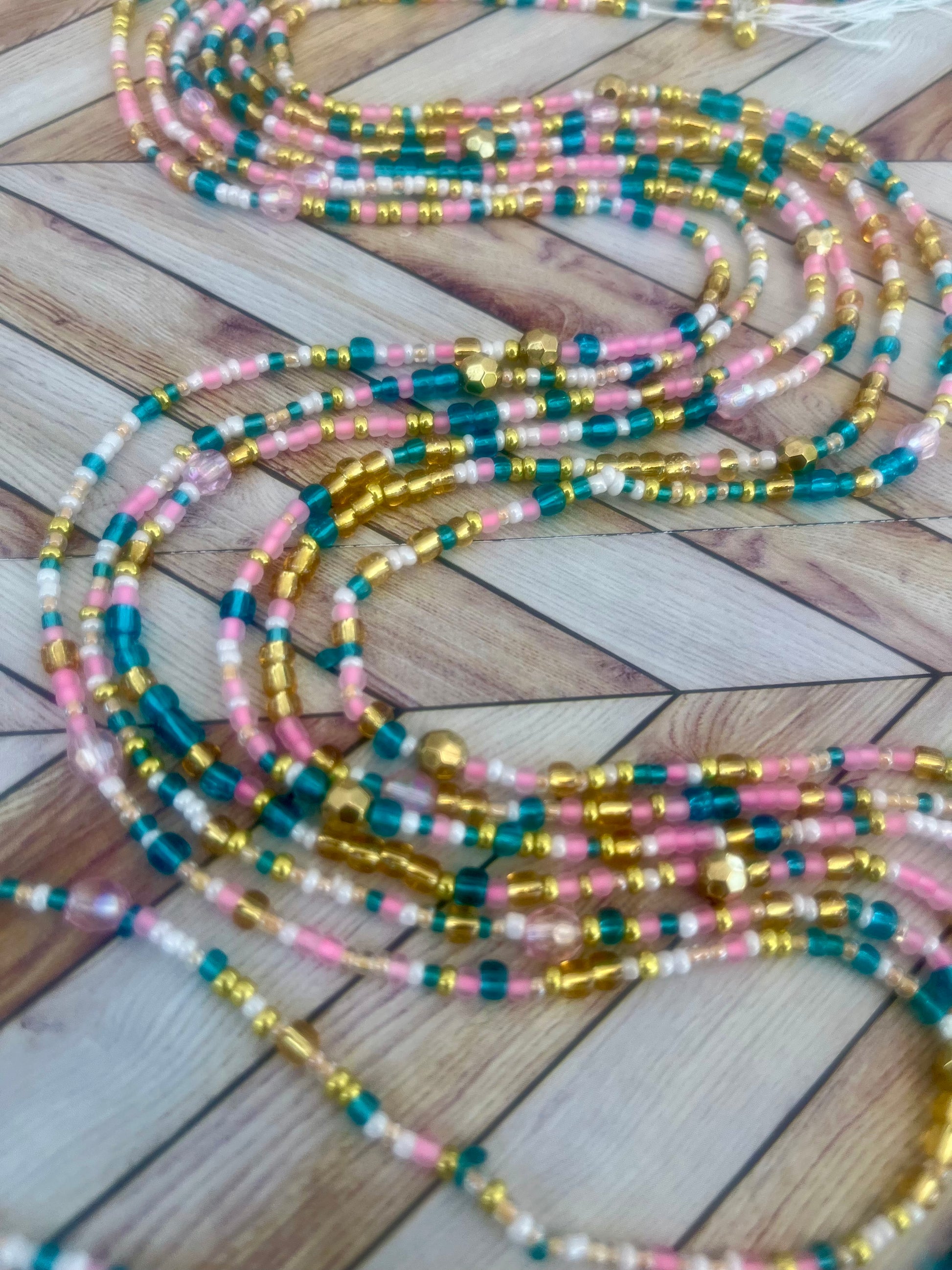 Colors: Pink and Multi-color Traditional Hand-crafted Waist beads.