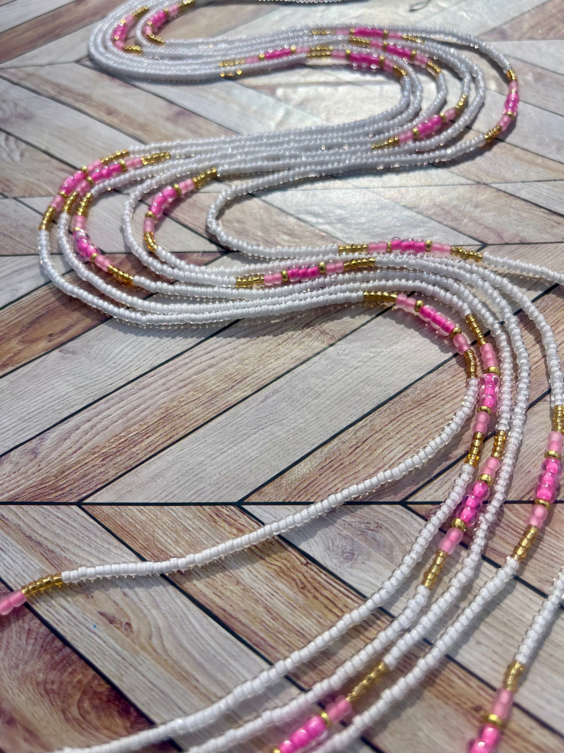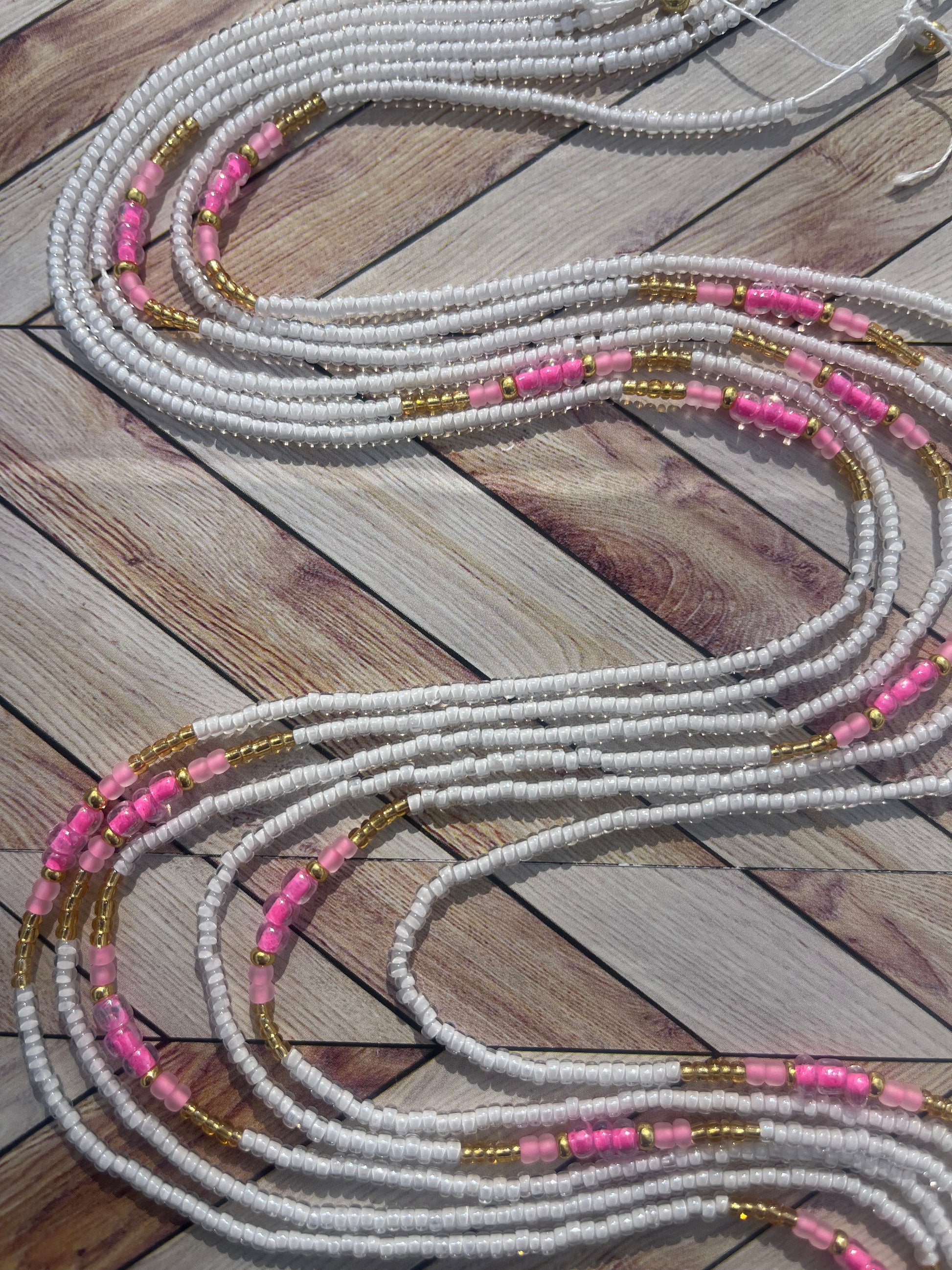 Color: White and Pink or Black and Pink Traditional Hand-crafted Waist beads.