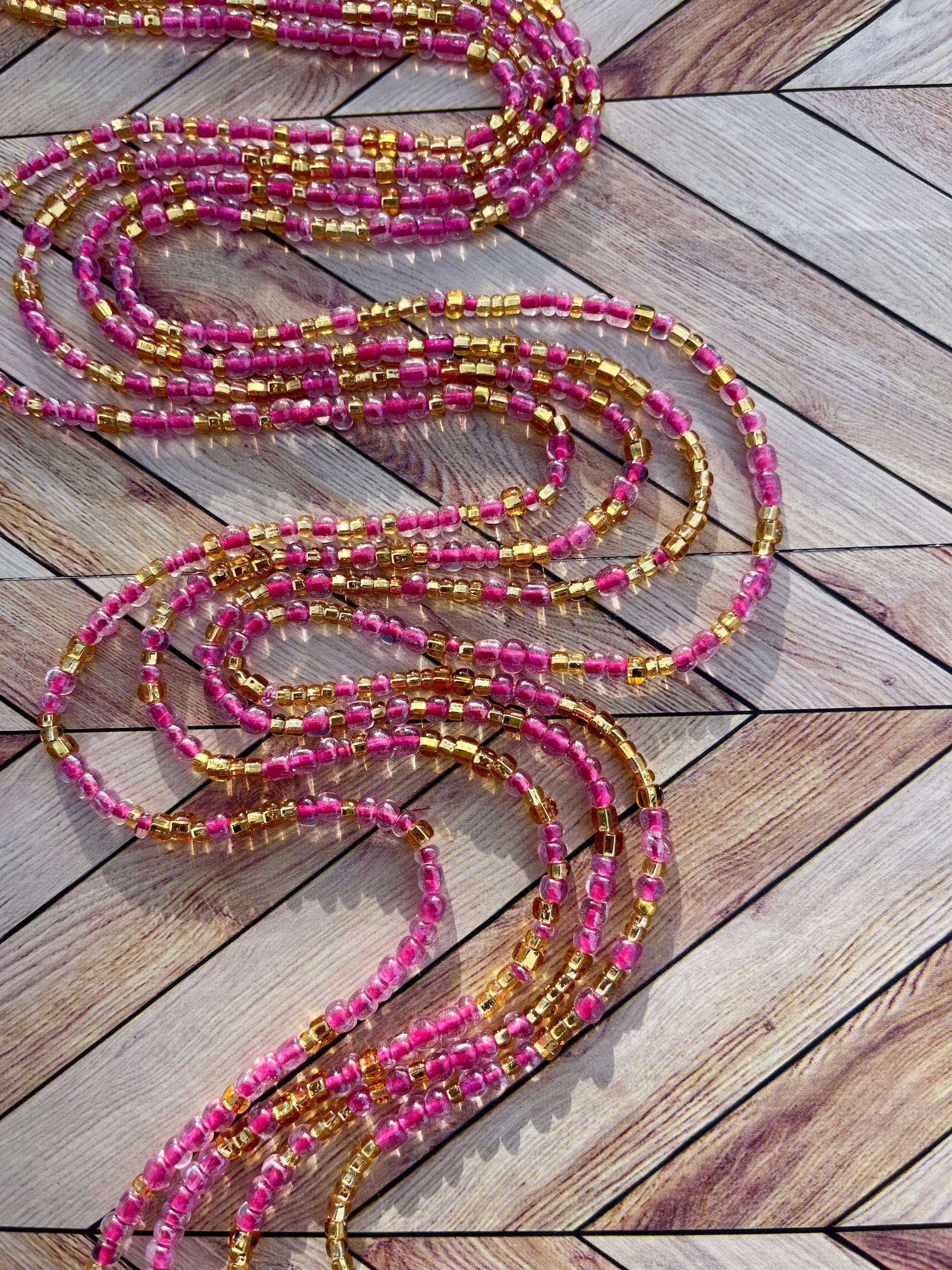 Colors: Pink and Gold Traditional Hand-crafted Waist beads.