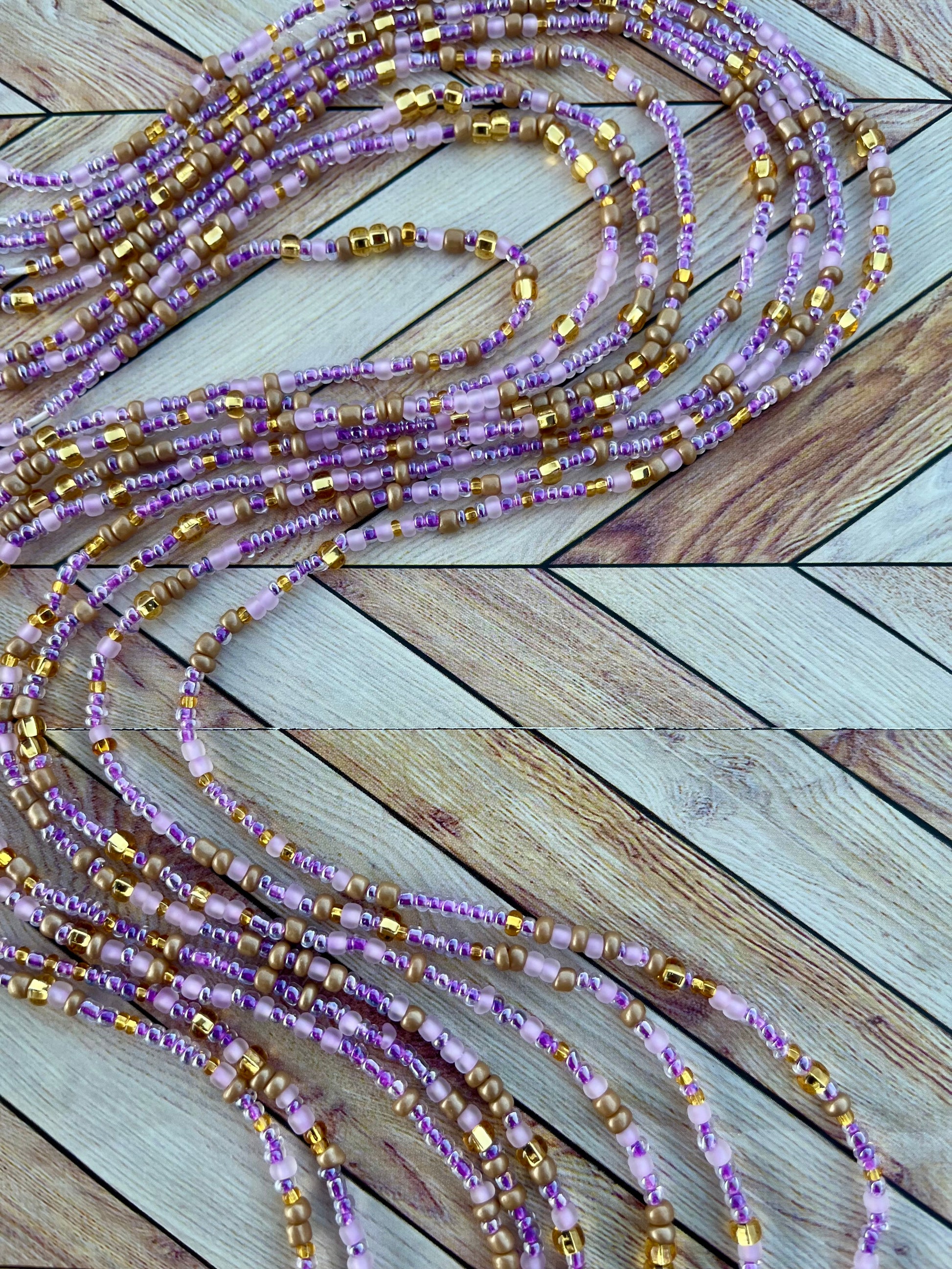 Colors: Purple and Gold Traditional Hand-crafted Waist beads.