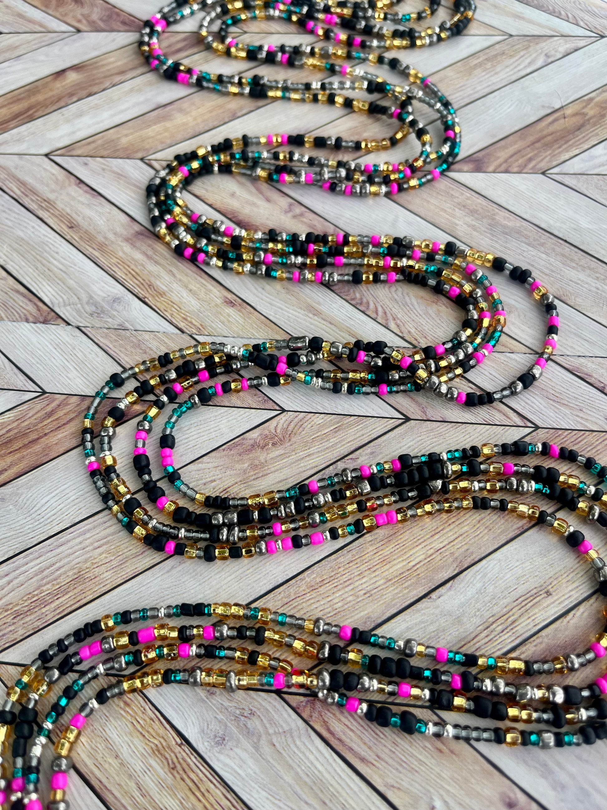 Colors: Black and Multi-color Traditional hand-crafted Waist beads.